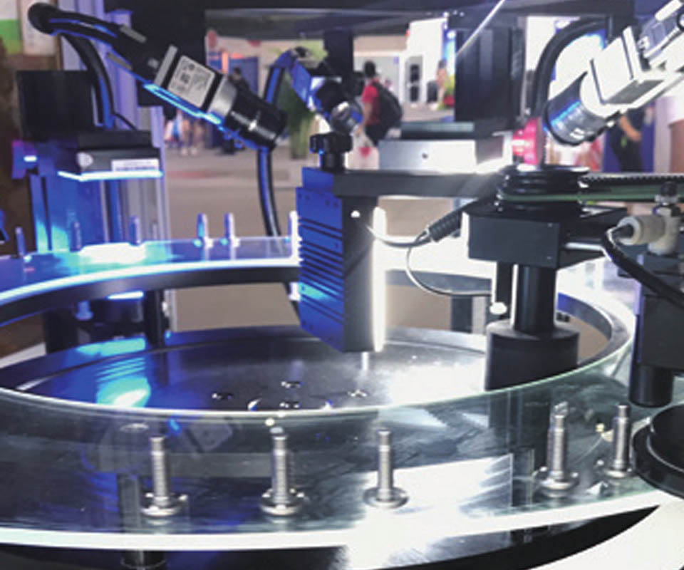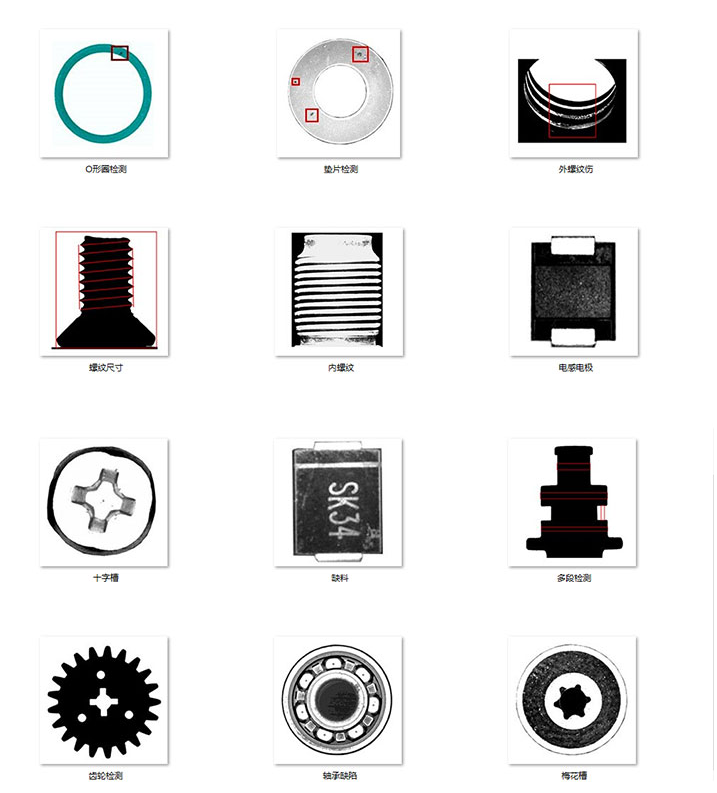 本設備主要用于可平穩放置的螺絲螺帽類、沖壓五金件、橡膠密封圈、墊片、醫療植入產品、端子、磁瓦等零部件的質量檢測與篩選。設備主要是通過工業CCD相機(德國Basler),利用玻璃的高透光性,對工件全方位拍照采圖,把采集到的產品圖片傳送到工業計算機,工業計算機中的檢測軟件通過合格品與次品之間存在圖像灰階差別,從而使系統能夠精確識別出次品;同時,通過FPGA技術,將不合格品剔除。